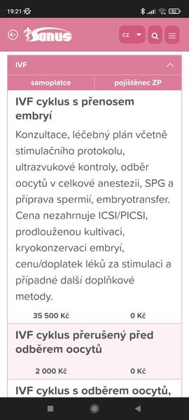 Sanus - nativ - 16000+1tisic za ICSI, minimalka 23tisic+1 tisíc za ICSI