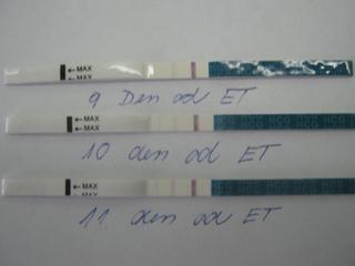 @z4401 Napoprvé mi vkládali dvě embrijka. Vajíček jsem měla 15, z toho 12 zralých. 10 se jich oplodnilo a čtvrtý den kultivace byla osm emrií velmi vysoké kvality. Na pátý den, den ET, nám zůstala jen poslední dvě, která šla nazpět, ale neujala se ☹