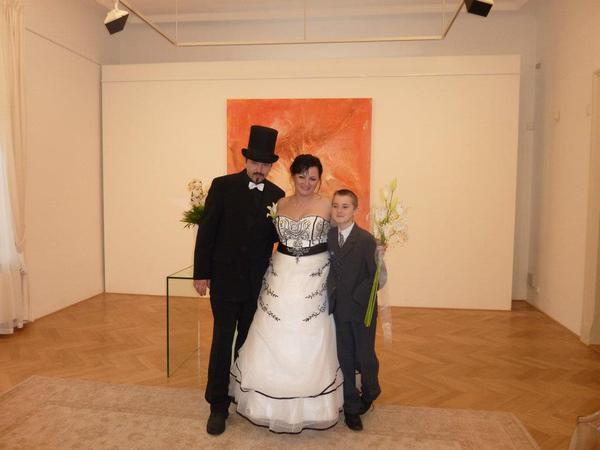 @janice_opice no hezká stylová rodinka a jaké svatební šaty wau 😉 tvůj už má chování nacvičené jak vidět, takž už jen pořídit sajdu a je to 😀