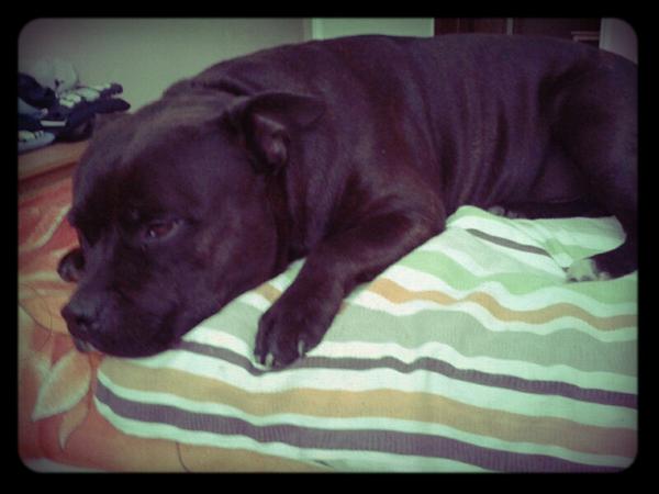 @brsh stafordíky miluju...před dvěma týdny mi na poli u vesnice vběhl pod auto bulteriér a když jsem ho šla odehnat, tak si nastoupil, sežral mi na zadním sedadle rohlíky pro celou rodinu a odmítl vystoupit...Páníček nikde, noc na krku, tak jsem ho vzala domů a pak putovala do útulku, protože zjevně naše čuby by si dala k večeři...
