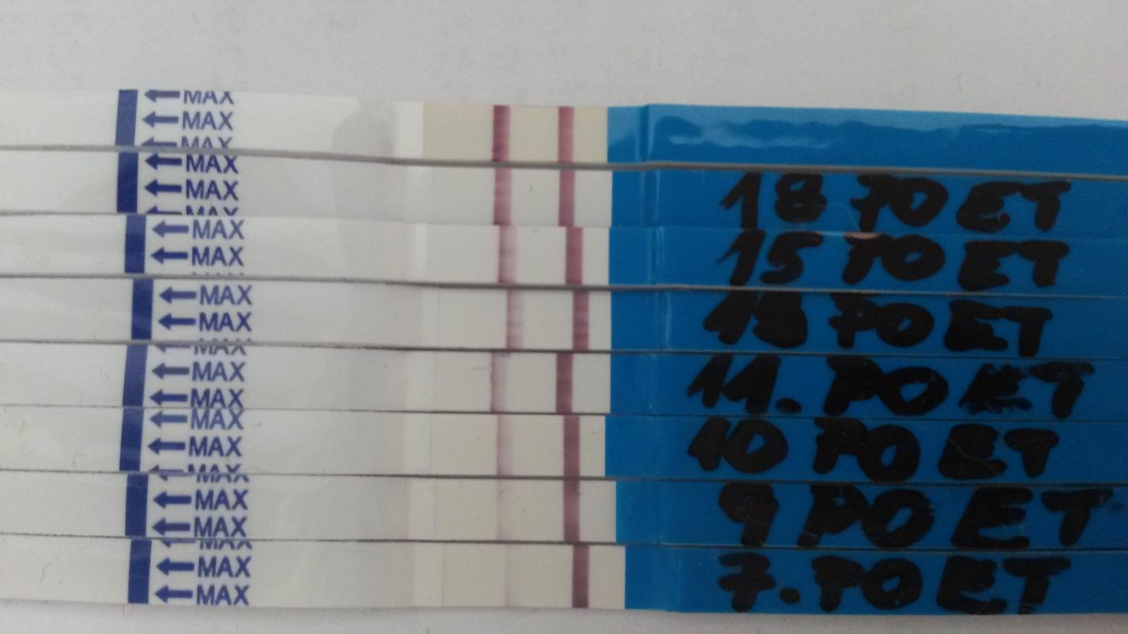 @lucalm tak dnes další testík, čárečka stále neviditelná, mám ji ještě slabší, než ty 7. de po ET. Ale ukazovala jsem to příteli a taky tam něco viděl, tak snad... zkusím zase zítra.