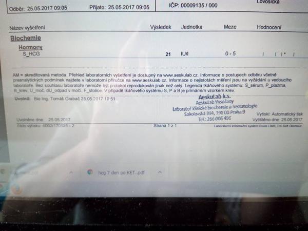 Ahoj, tak jsem včera byla na KET. Modlíme se už. Měla jsem pětidenní embrya,prý se jedno už snažilo z obalu, dala jsem si ještě asistovaný hatching. Tak jim bylo trochu asistovano 🙂. Říkám si, do třetice všeho dobrého.