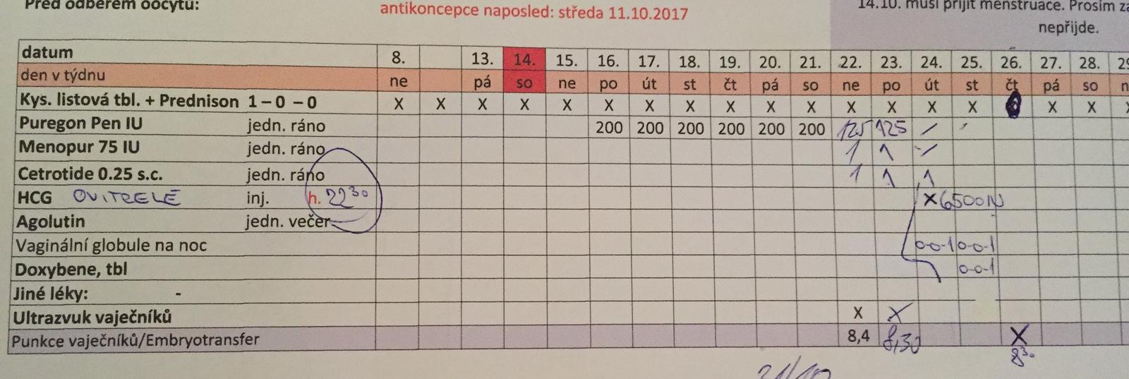 @hribek Ja mam prubeh vzdycky stejnej, tentokrat jsem mela akorat down regulaci o 5 dni dyl, protoze delozni stelka mela byt pod 5mm a ja ji mela 5,5mm. 😀 Ted ji mam 10mm a jeste asi poroste. 👍