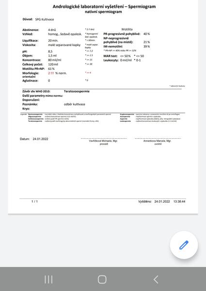 @sellynka2 ahojky už to tady vidím no spermiogrqm není nějaký luxusní má menší počet spermii ale ne zase nějak katastrofálně a vzhledem k tomu ze jsi d nim 3 x otěhotněla tsk ba jeho straně problém nebude. Dívám se na věk a to jsi mladá takže vajíčka by ještě měla mít určitou kvalitu. Potraty jsou povětšinou způsobené vadou embrya ( geneticky zátěž věk ženy ) což píšeš ze je u vás v pořádku . Dalším faktorem je imunologie ženy tedy ta reprodukční imunologie určitě nechat vyšetřit … můžeš vyrábět protilátky proti embryu. Psk různé abnornality dělohy , nebo hormonální výkyvy nedostatek progesteronu atd … určitě vys měla mít za sebou vyšetření hormonakniho profilu včetně štítné zkázy , genetiku vás obou, a tvou reprodukční imunologii - trombodilni stavy a vše kolem to oni ví co hledat. Určitě se nepokoušel bez všech vyšetření pokud už he to 3 ztráta .