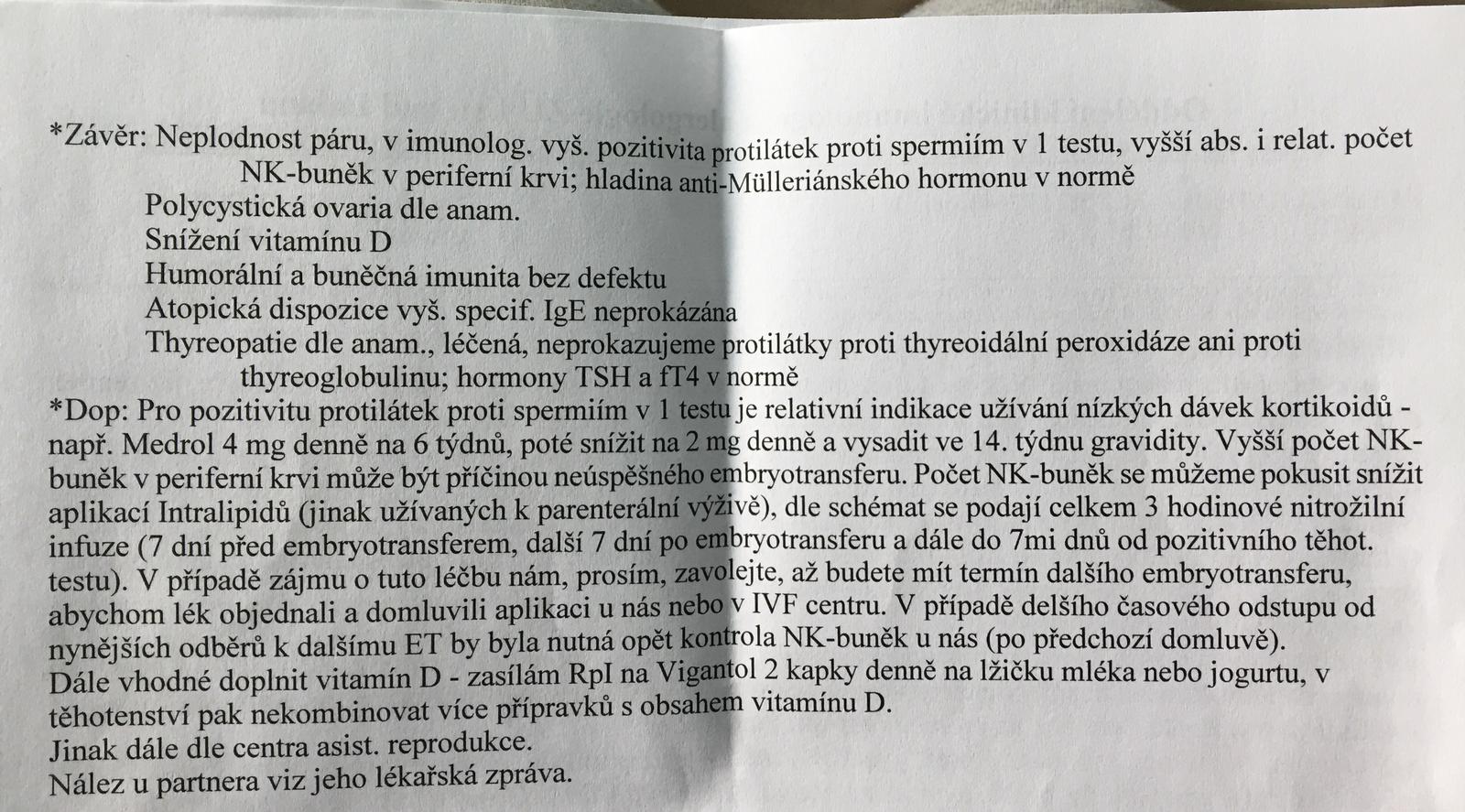 @kathlinkata holka v cem je problem?? Vzdyt to mas dobry!! Protilatky proti spemiim nic nejsou - max upravi se medrolem/prednisonem. NK bunky mas vyssi ne vysoky! Vklidu, neni vaznej problem podle zprqvy