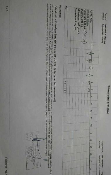 @uzovka68 Ahoj, já ten rozpis chápu tak, že tedy od zítřka (2. den cyklu) si máš píchat jak ten gonal, tak tu druhou injekci, tu Luveris. Od 6. dne pak přidáš Cetrotide, a to ve večerních hodinách. Až půjdeš na kontrolní ultrazvuk, tj. ten 6. nebo 7. den, dostaneš nový stimulační protokol, kde budou doplněny další dny a množství dávkovaných léků. Jen z toho protokolu nevyčtu, kdy máš ten Luveris aplikovat, jestli ráno nebo večer... s Luverisem nemám zkušenost, ani nevím, na co je 🙂