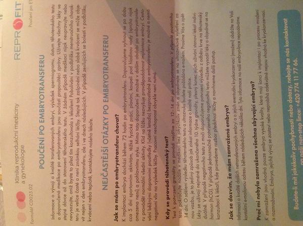 @jaja35 no pry se diky te prodlouzene kultivaci projevila kvalita, takze i kdyz je jich vic tak oni zamrazi jen jednickovy.. Treba normalne davaji i dvojkouvou kvalitu, ale na to mrazeni projdou pry opravdu jen nejlepsi, ti 4 jsou zatim ve stadiu expandovane blastocysty a myslim ze museji byt take hatchujici... Takhle nejak mi to dr. vysvetlila, ale i tak jsem spokojena, ona rikala ze je to nadprumerny vysledek a kdyz videla moji bublinku tak rekla, ze je ucebnicova 😀 hihi ... Mozna to rika vsem, aby lidi uklidnila 😀 kazdopadne ja jsem se pak bala i jit vycurat 😀 .... To jste meli teda zajimavou navstevu, no aspon taky trochu jine myslenky ze? 😉 hele to zni teda dobre to brisko, v tech papirech co jsem dnes dostala je primo napsany, ze bolest jakoby na ms muze byt normalni a tez drobne spineni nebo slabe krvaceni, takze to opravdu nic neznamena a akne je taky dobry znak spousta tehotnych vypada jak 14lete deti 😀
