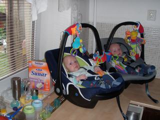 na doporučení lékárnice jsem nakonec vzala tohle, bylo tam i po opalování zdarma a měla jsem kupon na 15%slevu, takže to vyšlo na 419,-, a fotky ze včera--Takhle se u nás spí,koupe, čumínkuje , novej griludírnakrb , kočár, zase čumínky , chlapečci vaří se mnou a takhle se Péťa hrozně potí a nejenou u jídla.