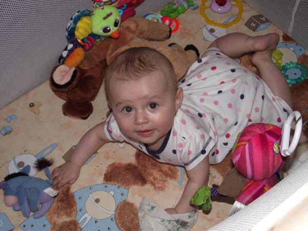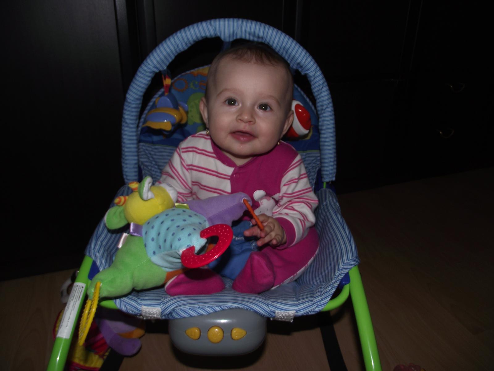 Jinak Kristýnka bude mít v úterý už 8 měsíců a teď v Út jsme byly v poradně a váží 8140 g a 70 cm, no macík to je na nošení 😉 Je to moje sluníčko a fotečky přikládám