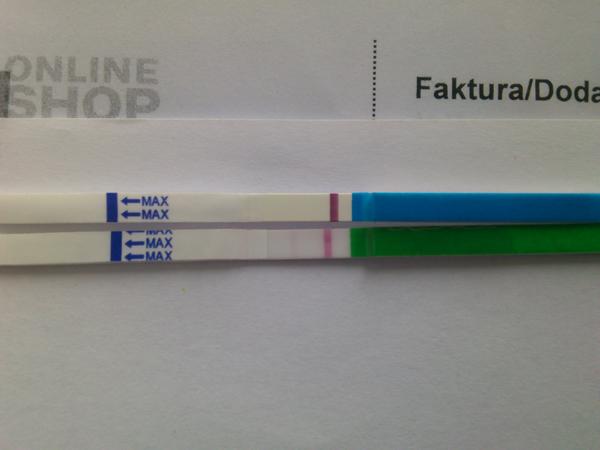 Tak holky toto moje dnešní testy - ráno těhu, pod ním nyní ovu - sice reagují na jiný hormon, ale prý jsou dost podobné,někde sem dokonce četla že ovu reaguje dřív než těhu, tak mě teda řekněte, co je na tom pravdy... je možné že se na ovu testu udělá slabá čárka vždy ??