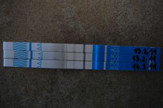 Já dnes plaším- přijde mi, že čárka dnes naskočila dýl než včera a je slabší, takže se bojím, aby to nebylo biochemický, který u nás hrozí- nevím, asi jsem neměla testovat hned další den,ale aspoň obden, zítra jedu do Caru na krev a pro léky...