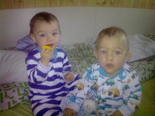 Ahojky Sim.Koukam co jsi za to tehotenstvi i po nem prozivala.Ale kluci jsou moc krasni a maji se cile k svetu.Moje tehotenstvi take nebylo jedno z nejlepsich.Holky se meli narodit 2.2.2010,ale dostala jsem tehotenskou preklamsii.Takze jsem zacala hrozne pribirat na vaze.Posledni dny to bylo dokonce i 2 kg denne.Takze 24 prosince me vezli do porodnice protoze se mi silene zvednul tlak a nemohla jsem ani pomalu chodit jak se mi motala hlava avse jsem videla rozmazane.V porodnici si me museli nechat kvuli tomu tlaku.Tyden jsem lezela na jipce ale pak uz jsem mela takovy tlak ze 29 prosince me brali na sal.Rodila jsem cisarskym rezem i kdyz holky byli hlavickou dolu tak kvuli tomu tlaku to jinak ani neslo.Po porodu me odvezli na Aro kde jsem zacala hrozna krvacet.Sestricky na nic necekali a volali doktorovi.Ten usoudil ze to neni akutni.Po dlouhem jednani setricek s doktorem ktere mu vysvetlili ze to akutni je tak se odhodlal prijit a uznal ze musim na operaci.Davali mi spoustu transfuzi.Dovezli me na sal a pak uz jen vim jak me probouzeli .Museli me nechat dva dny v umelem spanku.Po probuzeni jsem jeste lezela 14 dni v nemocnici.Sestricka mi jen rikala jak me probudili ze jsem malem umrela.Ze to bylo za minutu dvanact.Jedna holcicka ma srdecni vadu.Tu hned po porodu odvezli do detske nemocnice.Takze tu jsem vydela az Za mesic.No hruza.Druha sla semnou hned po propusteni domu.Vazili Natalka 2490 a 46cm Nikolka 2020 a 45cm.Nikolka ma za sebou druhou narocnou operaci v Praze a vse zvlada v poradku.Je to velka bojovnice.Je o proti Natalce slabsi.Zacala lezt a uz se stavi v ohradce a vsude po byte.Natalka ta uz mesic chodi.Ale Nikca ji dohani.Snazi se delat to co ona.Jsou si hroznou oporou.Hodne si spolu vyhraji.Vsak to znas ne?Ceka nas jeste jedna operace.Moc se modlim aby byla tak uspesna jako ty dve predesle.Moc ti preji at ti kluci pekne rostou a at jsou hlavne zdravi.