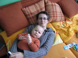 Jinak Ondra pěkně papá, začínám ho zvykat na normální jídlo - něco chce, něco nechce, trošku už překobal svůj odpor ke kouskům, takže je to zase trochu lepší. Má 4 zuby (vrchní ještě ne moc vylezené) a moc se mu nechce kousat. Je to náš obřík tlusťounký...ale to vyběhá...už začal. Ve 12,5 měsících začal sám chodit. Bylo to docela rychlé. Akorát je hrozně vzteklý, už nevím, co s ním, když se snažím po dobrém nereaguje, když zvýším hlas a plácnu mu, tak začne řvát ještě víc, vyvalí se na podlahu a konec. Už začíná dělat scény i venky - no děs. Stačí jen, když se chystá udělat něco, co nesmí, já řeknu Ondro ne a už řve a už se válí. Neporadíte?