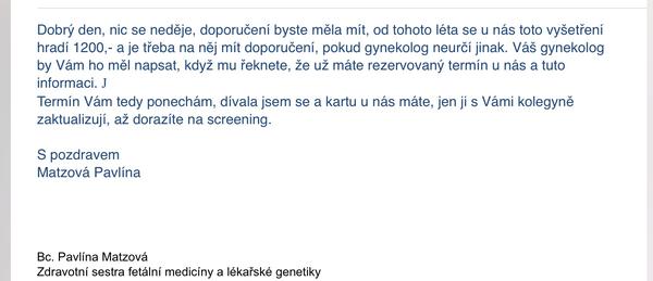 Dnes jsem byla u Dr. - zhodnotila, ze screening je ok, objednala mě na krev ke 2.screeningu a o plodovce nepadla ani zmínka.