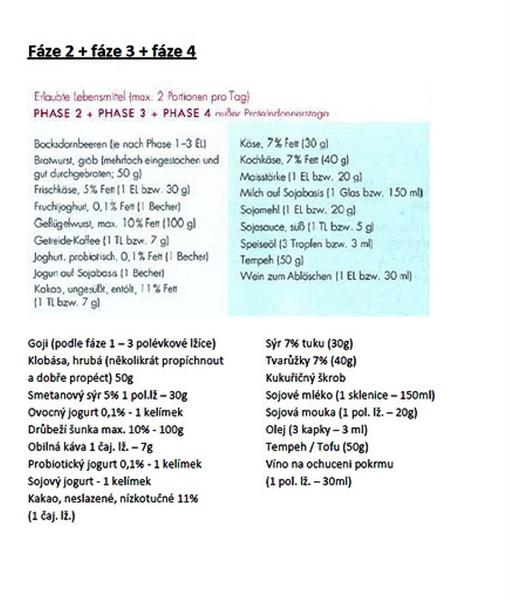 Denně je doporučeno sníst do 800 gr mléčných výrobků .Také Tofu je povoleno 1 A 2 Fáze !!