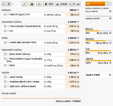 Jinak - manžel zatím tabulky nevzdal. Občas už se dokonce blížíme k tomu množství co by měl opravdu sníst, ale přiznávám se, že občas si pomáhám berličkami typu - k jogurtu a ovoci co má ke svačině mu přihodím třeba ještě hrst piškotů.