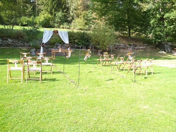 Co se týká výzdoby záleží na místě a na stylu svatby. Některá místa už jsou samy o sobě tak krásné, že nepotřebuji nějakou další výzdobu. Poslední dobou je moderní přírodní styl svatby,ale opět zde platí že musíte brát v úvahu kde se svatba nakonec bude konat.