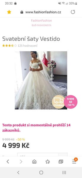 Saty na fotce jsou nadherne, ale jestli je to nejaky obchod "preposilame-z-ciny.com", tak od toho by me odradily vsechny ty videa a obrazky na internetu "objednane vs. dorucenne svatebni saty". Osobne mam taky dobrou zkusenost s odkupem starsich satu z pujcovny, ale na to clovek musi mit cas je hledat, coz ne kazdy ma, ze. Myslim, ze jsem prosla pujcoven asi patnact (4,5 roku zpet, pujcovne tehdy bylo od 3 000 do 30 000, nakonec jsem jedny princeznovske, ale trochu mene nez ty na fotce) odkoupila za 3500 + asi 700 pujceni spodnicky). Tip: cim mensi pujcovna - tim mensi ceny, cim mensi mesto - tim mensi ceny.