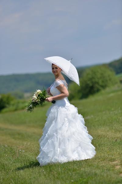 Já jsem koupila od paní, která si je nechávala šít, měly jsme hodně podobnou postavu, tak mi sedly. Stály 6 tisíc. Měly jsme svatbu na dovolené, tak jsem potřebovala vlastní.