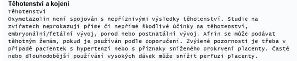 Jinak v tehotenstvi mivaji ucpany nos i holky, ktere na sprejich zavisle nejsou. Je to dost casty jev... rika se tomu, myslim, tehotenska ryma. Ja v tehotenstvi uzivala Afrin... u toho neni vylozene zadna kontraindikace (v pripade bezproblemoveho tehotenstvi) napsana.