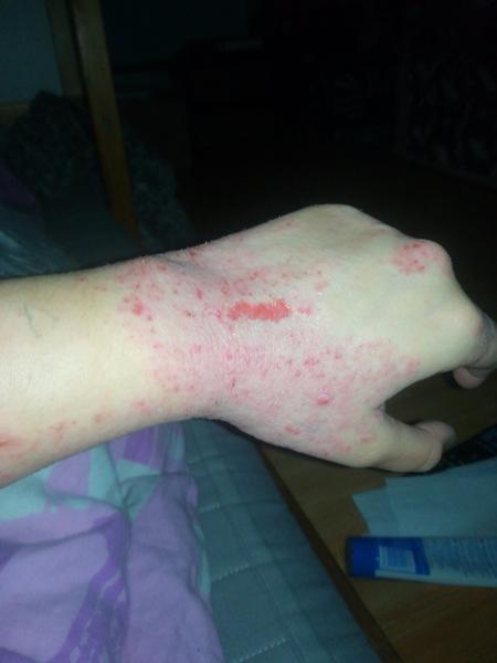 Nám taky Fenistil kapky,slidní ho to a neškrábe se vůbec-ale určo s ním zajdi ke kožní,ať se Ti an to podívá-a v lékárně jsem koupila Leciderm-modrobílý krém,tím mu mažu celé tělíčko a můžu říct,že jsme bez ekzému 😉