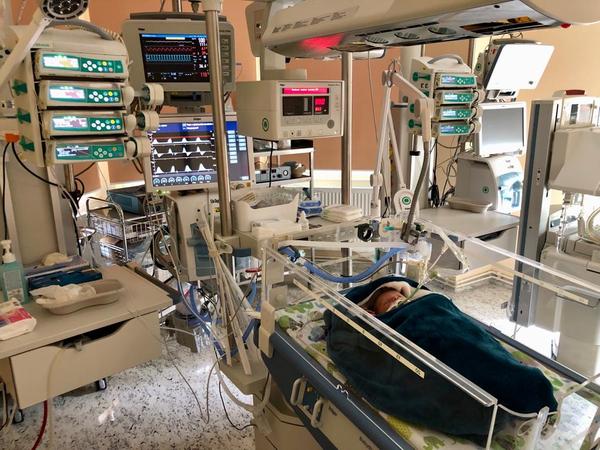 Nejdriv byl na oddeleni RES a JIP cca 3 tydny a pak o patro vejs na intermediarni peci - tam jsme byli asi taky 3 tydny.