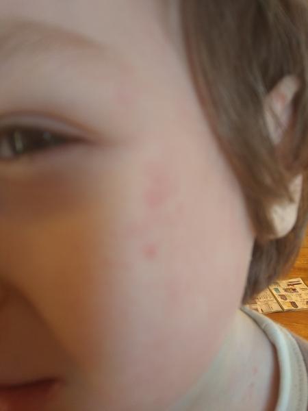 Dcera (8 měs.), v týdnu před Velikonoci dva dny zvýšené teploty, rýma, do tří dnů se udělaly červené fleky (žádná vyrážka ani krupička, nebyly zapálené, pouze lehce vystouplé fleky) na zátylku a za ouškama, které byly nejvíce patrné po probuzení, odpoledne mizely. Za dva dny po flecích ani památky. Nyní po 14ti dnech se ve čtvrtek během dne objevily tyto fleky znovu, v pátek je měla všude možně po těle, byli jsme u pediatričky, závěr: přidružení k viróze, máme dávat Fenistil kapky (nezabírají). Žádné teploty, nesvědí jí to, malá je čilá jako obvykle, není průjem, chuť k jídlu má, prostě žádné jiné příznaky, pouze fleky, které do dnešního rána "vygradovaly" a malá je měla všude po těle ve velkém množství, navíc se fleky "stěhují", takže tam kde je měla včera není po mapě ani památka, za to se objevily na jiných místech, kde včera nebyly. Dopoledne jsme strávili na pohotovosti, kde si nás postupně přebrali na dětské pohot., infekčním a kožním odd. Tím, že nemá teploty, ani jiné příznaky a je normálně čilá, nenašli nic, co by mohli diagnostikovat. Max. se přiklonili k alergické reakci (ovšem neměla nic nového k jídlu, nepoužívám ani nový prací prášek). Tudíž máme hlídat jídlo a uvidí se. Odpoledne se mapy začaly lehce ztrácet (od středu), ale stále jsou patrné... Přikládám fotku pro představu. Prosím, pokud jste se s tím někdo setkal, víte co to je? A co s tím dělat?