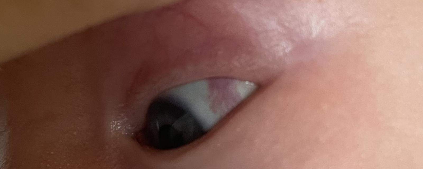 Ženy, Teď sem si vsimla ze má dcera (3tydny) flek v belmu.. Dr už samozřejmě neordinuje a nevím jestli kvůli tomu plasit na pohotovost nebo je to praskla Žilka? Nemáte někdo zkušenost ?