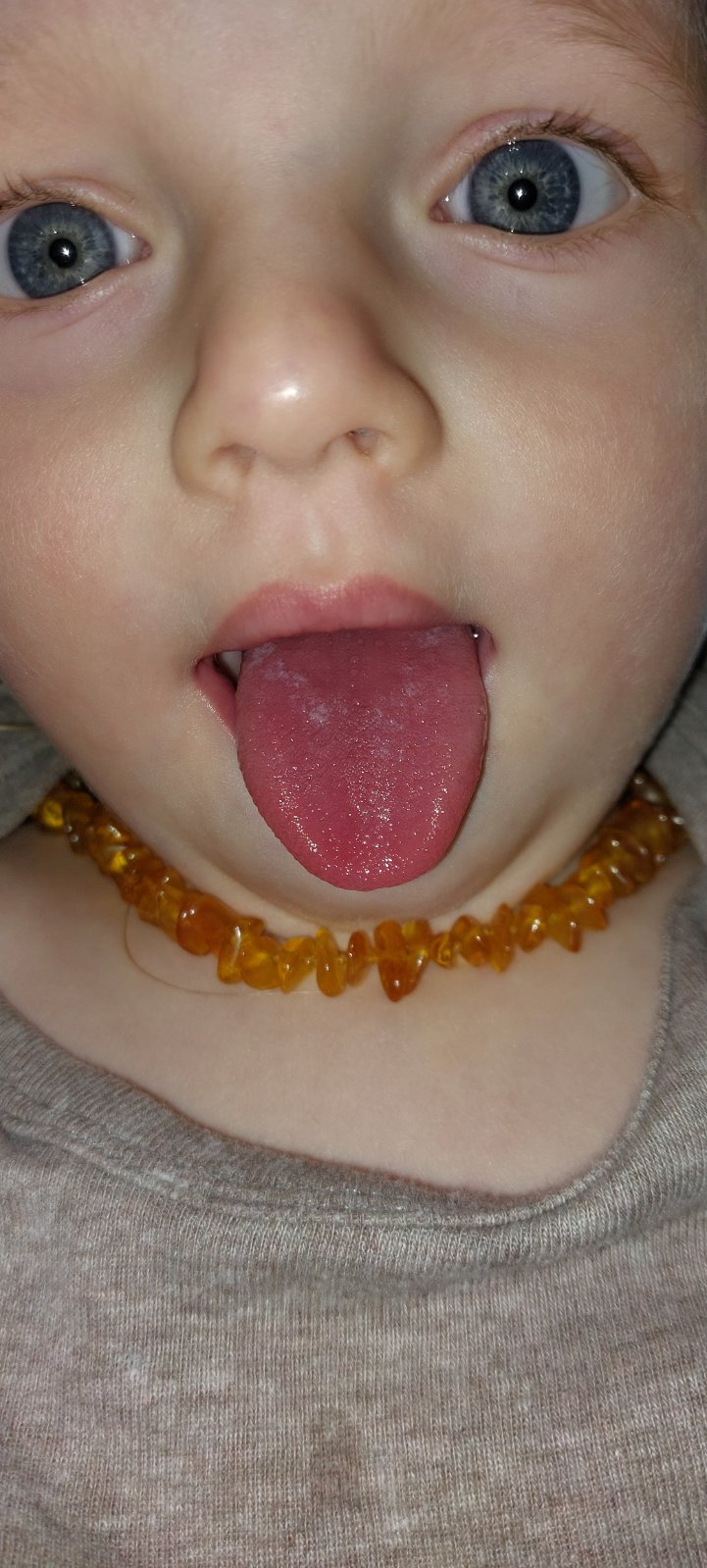 Ahoj holky zda se vám to jako malinová jazyk dcerka má vzadu i i trochu vystoupele chutive pohárky včera dobrala atb.AmoksiklavDekuji