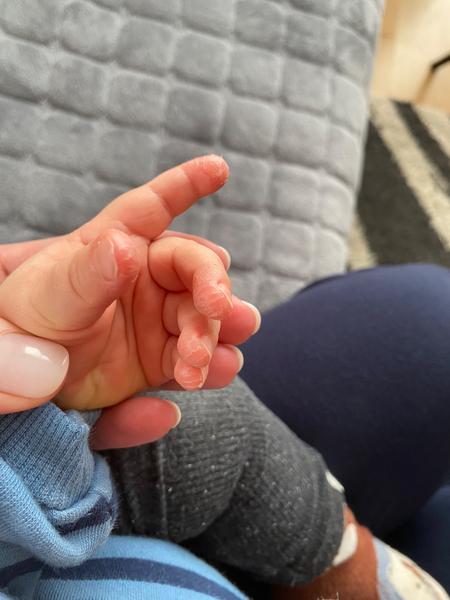 Synek 11 mesicu. Loupaji se mu prstiky na rukach. Na jedne vice. Praskne to az do rude ranky. Uz i kolem nehtiku uz je ma cele zarudle. Pediatrička dala masticku s kortikoidy a nepomaha to.