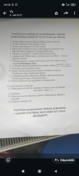 Jinak mě když se něco nezdálo, tak jsem volala buď na ORL ambulanci/pohotovost nebo dokonce jsem volala na dětskou pohotovost, a tam mi taky poradili a dokonce mi řekli že to chápou, když je syn po operaci a já si nevěděla rady.