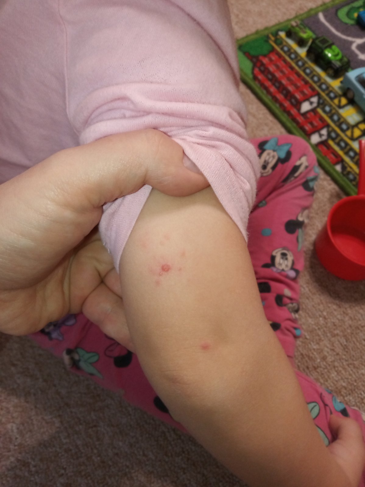 Zatím těžko říct. Průběh může být různý . Klárka měla jen pár pupínků. Anežka měla první den, nebo dva jen pár pupínků a pak se osypala úplně všude. Měla je i v puse, pipce apod. Při jídle a na WC hrůza. Tak snad malé zůstane jen těch pár pupínků. 😉