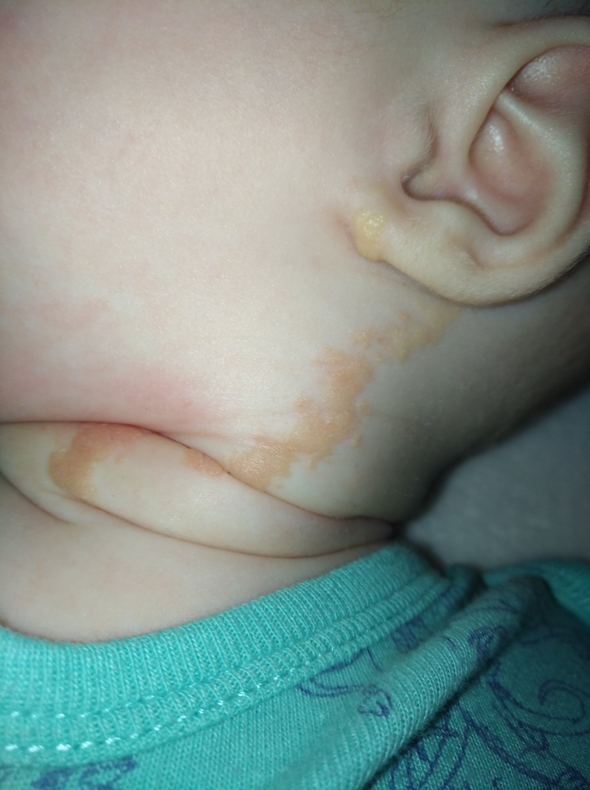 V porodnici jsem to řešila. Vždy mi bylo odpovezeno že je jen vyrážka která zmizí. Dětská dr to pomalu vůbec neresila, dala mi na to infadolan a řekla jdete ke kožní. Na kožním jsme byly ve 4 týdnech, kožní řekla to same co v porodnici a dnes mi řekla že je to ae, zkusim ještě zajit k jinému kožnímu a uvidim no