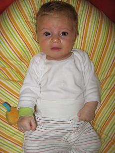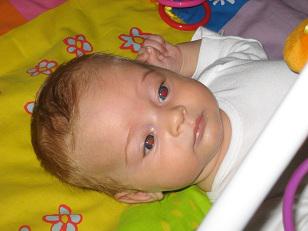 malicky drzi krasne hlavku, snazi sa uz dvihat aj na rucky,pozoruje, brble si, usmieva sa, tak snad budu dr. spokojni vsade kam prideme