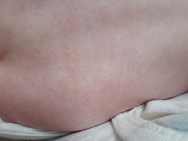 Nepatrné pupínky na stehýnku kojence. Začátek projevu ekzému?