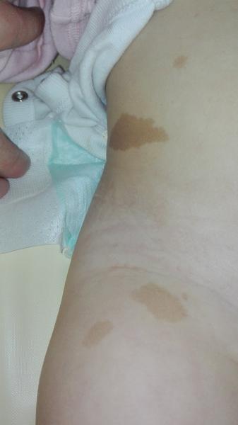 @el6 pridavam foto dcery, NF 1 ma jeji deda, otec, u nas geneticky diagnostikovano take. Skvrn mame na telicku cca 20 x, nektere tmavsi, nektere svetle, na boku viz. foto ma nejvetsi a nejtmavejsi, jinak jsou po celem telicku krome krku a obliceje.