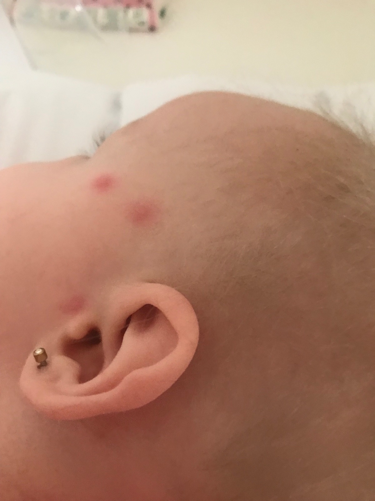 @simule134 vypadá to jako Štípance od štěnic(a teď bacha těch potvor se skoro nedá zbavit,pokud bude mít více štípanců v takové frekvenci je třeba hlídat v noci a nemusí být postipani vsici,kdyby to byly ty mrchy řešit deratizacį,vse vyprat min.na 60,nebo zkus zajít k Dr kdyby bylo více štípanců