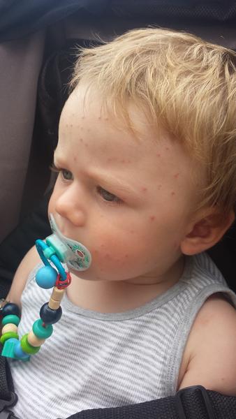 Holky,tak nic infekčního to není.Máme to na celém obličejíčku.Máme mazat fenistil gel+dávat kapky fenistil gel.Když se to nezlepší v pá dorazit k dr.