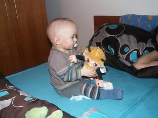 Tak jsme byli na té naší kontrole, v Ostravě - a jsem ráda, že nemusíme jezdit až do Prahy. Hodinu jsme seděli v autě, potom hodinu v čekárně. Pak nás zavolali a byl tam zrovna nějaký zástup, pan doktor co se nějak Chlachula jmenoval, no divné jméno, nevím nevím... ale milý byl, to ano 🙂 Prohmatal Vašíkovi hlavičku a švy ještě nesrostly - super! 🙂 Ale pak mu hlavičku přeměřil kefalometrem a prý do šířky zůstala stejná a do délky porostla. Pak nemohl v předchozím papíru najít minulý obvod hlavy, takže prý kontrola raději za tři měsíce. A můžete jít. To jsem teda byla proti, aby nás po pěti minutách poslali domů. On tedy zvedl sluchátko a hele, za chvíli přišel i pan doktor Lipina. Jak Vašíka viděl, tak byl nadšený, hlavička vypadá prý skvěle a kontrola za rok! Tak se nakonec shodli na kompromisu - za půl roku. Ale chtěla jsem hlavně vědět, jak dopadlo srovnání 3D kefalometrie z Frýdku a to tak z fleku nevěděl, ale prý kdyby to nebylo v pořádku, tak by se určitě hned ozval, tak mu asi ještě napíšu maila, jestli by mi to nepřeposlal, ať taky vidím 🙂