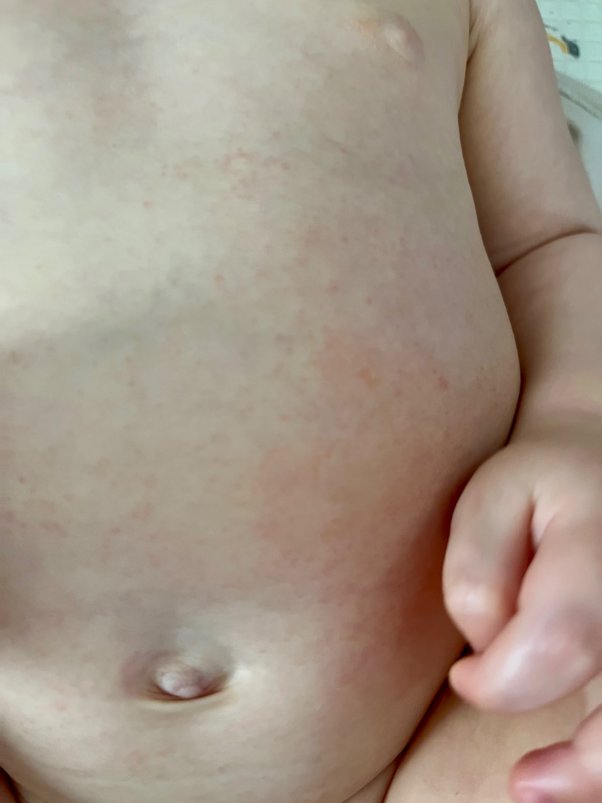 Teď to má po celém bříšku, až na pindíka .. trošku na stehýnkách.