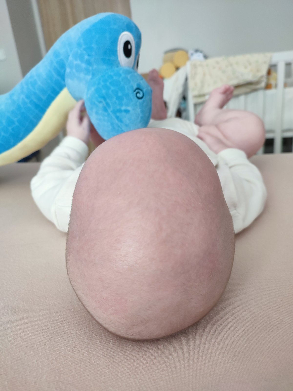 Dcera měla úplně děsný tvar, vzadu placka, takový jakoby nepravidelný pětiúhelník. Všechny 3 doktorky říkaly, jak se to spraví a že helma třeba. Spravilo se to dost, ale pořád ji má dost nepravidelnou (ale souměrnou), vzadu placku. Nesedí ji skoro žádná přilba. Neměli jsme tenkrát na rady doktorek dat a helmicku zařídit. Ale ona to měla dost, vy to máte hodně maličko.