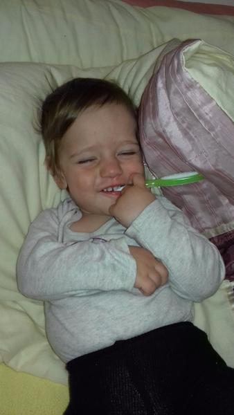 Venku je pošmourno a stejně je to tak i u nás. Malé rostou zoubky tak je u nás plačtivo. Těžko bych ji dnes na tvářičce vykouzlila úsměv. Tak aspoň posílám 2 starší fotky. Ta první je asi měsíc stará, když jí byl rok. Ta druhá, kde jsme obě, je z rehabilitace, kde poprvé začla pást koníky. Na té je jí asi půl roku. Pokud to musí být fotky z dnes, tak nevadí...snad aspoň potěší 🙂. Přejeme všem soutěžícím štěstí a ať je u vás radostněji než u nás 🙂 Kristýnka a Míša 🙂