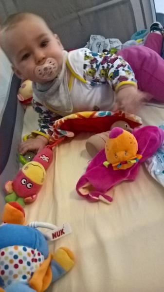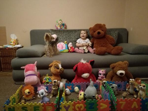 Celý náš dům je zahradou smíchu, alespoň od doby, co máme nasi malou opičku Marušku ❤ Když ale maminka potřebuje neco udělat, vytvoří ji "zahrádku" v cestovní postylce, Maruska rozhaze všechny hračky a zvířátka a lumpačí a směje se ☺ Je jako živé stribro, a tak je fotka "ze zahrádky" opět rozmazaná, a tak přikládám i fotku zvířátka Marušky 😂☺