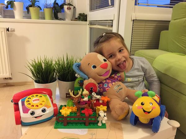 "Amálko, teď se usměj jako šneček!" řekla jsem. A jak to dopadlo? Amálka zdůvodňuje svůj vyplazený jazyk tím, že přece všechny zvířátka FP se smějí s jazýčkem. Naše Amálka přišla kouzlu hraček FP na kloub! 😍