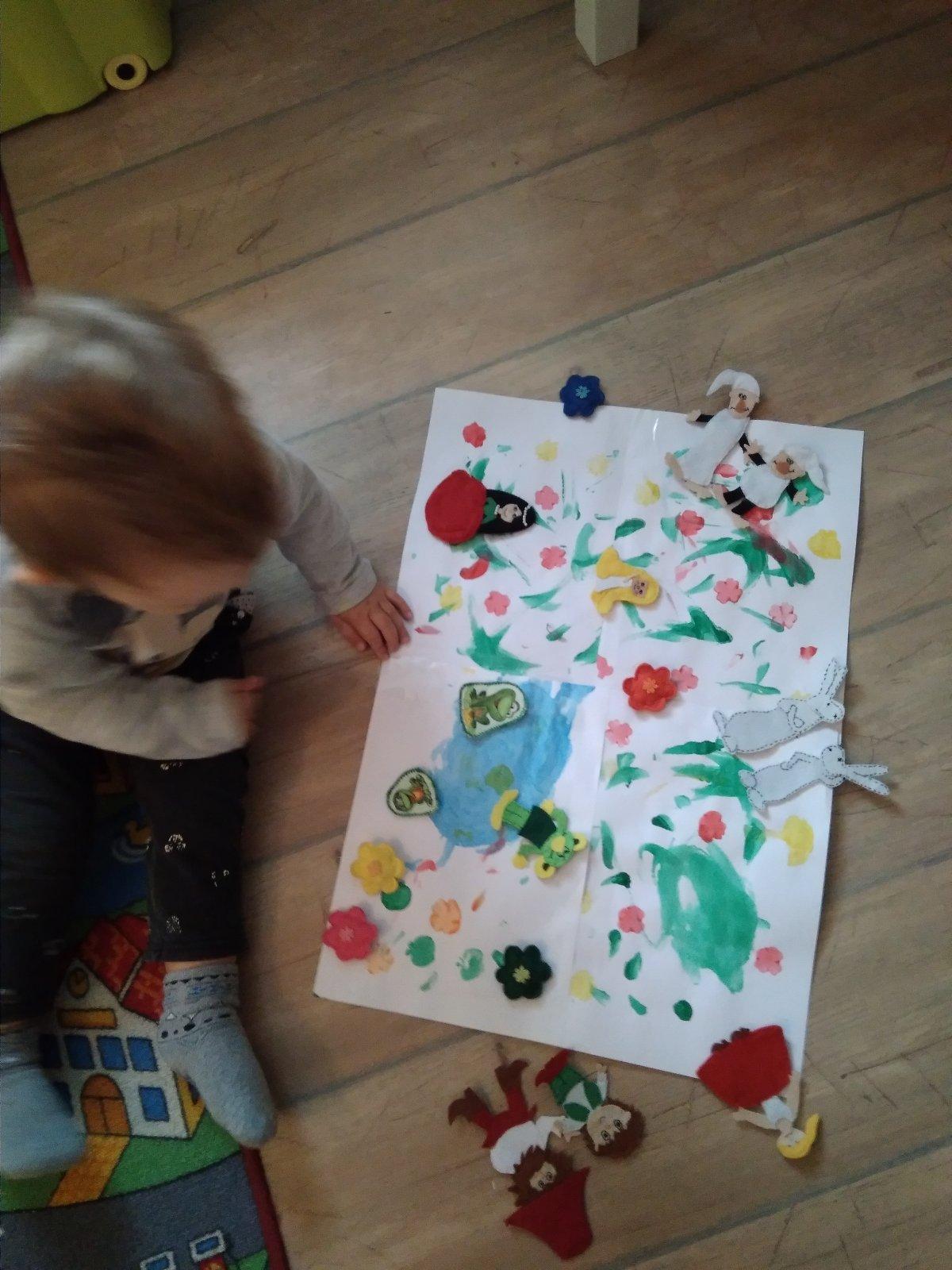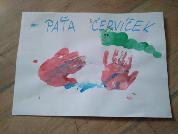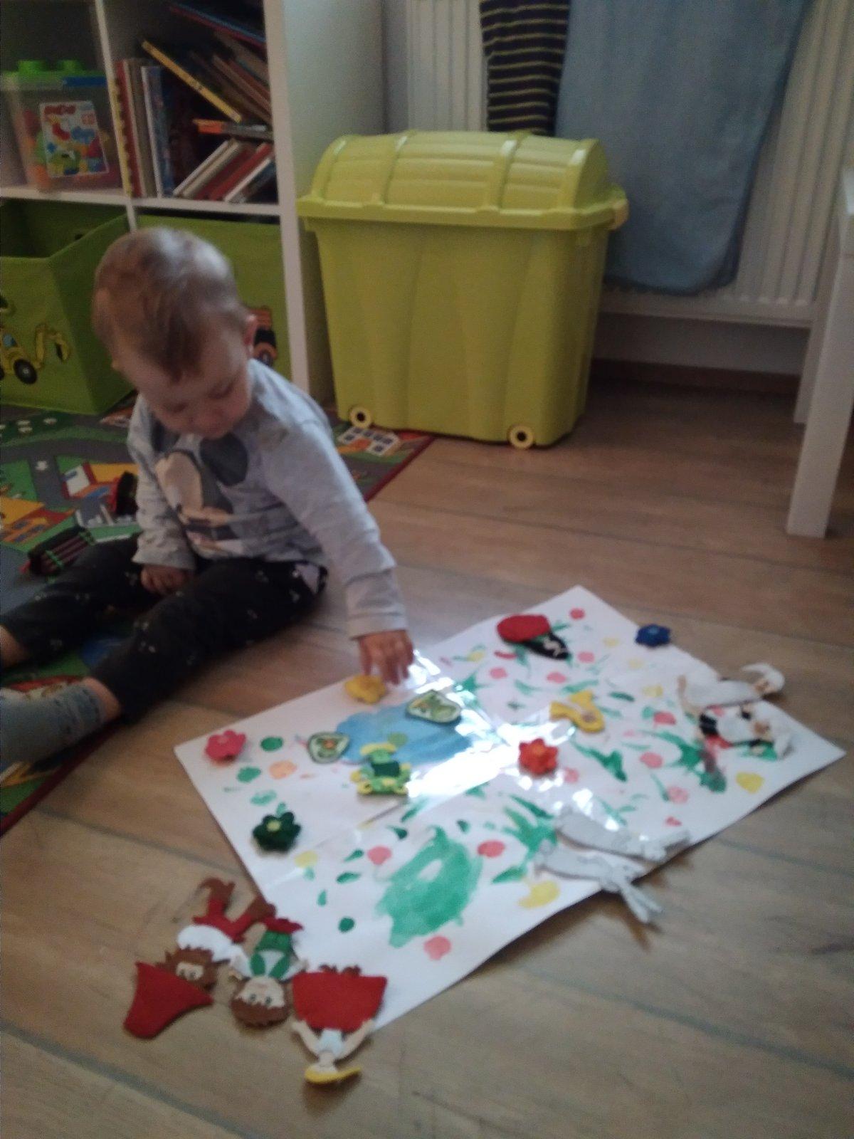 Tak jsme se po probuzení pokusili také udělat naši zahradu smíchu. Nejdříve jsme jí museli namalovat, prstové barvy jsou idealni, a prý i dobre. A pak jsme zahrádku naplnili. Naše zahrada smíchu je plná kyticek a oblíbených pohádkových postavicek. A na závěr důležitý podpis spoluautora 😁 i úsměv se nám vykouzlil na tvářičce.