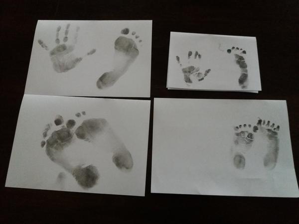 Pak jsme vesele do zahrádky obtiskaly ručičky a nožičky obou našich holčiček,aby se podílela í dvouměsíční Terezka..