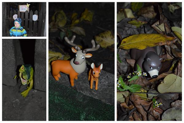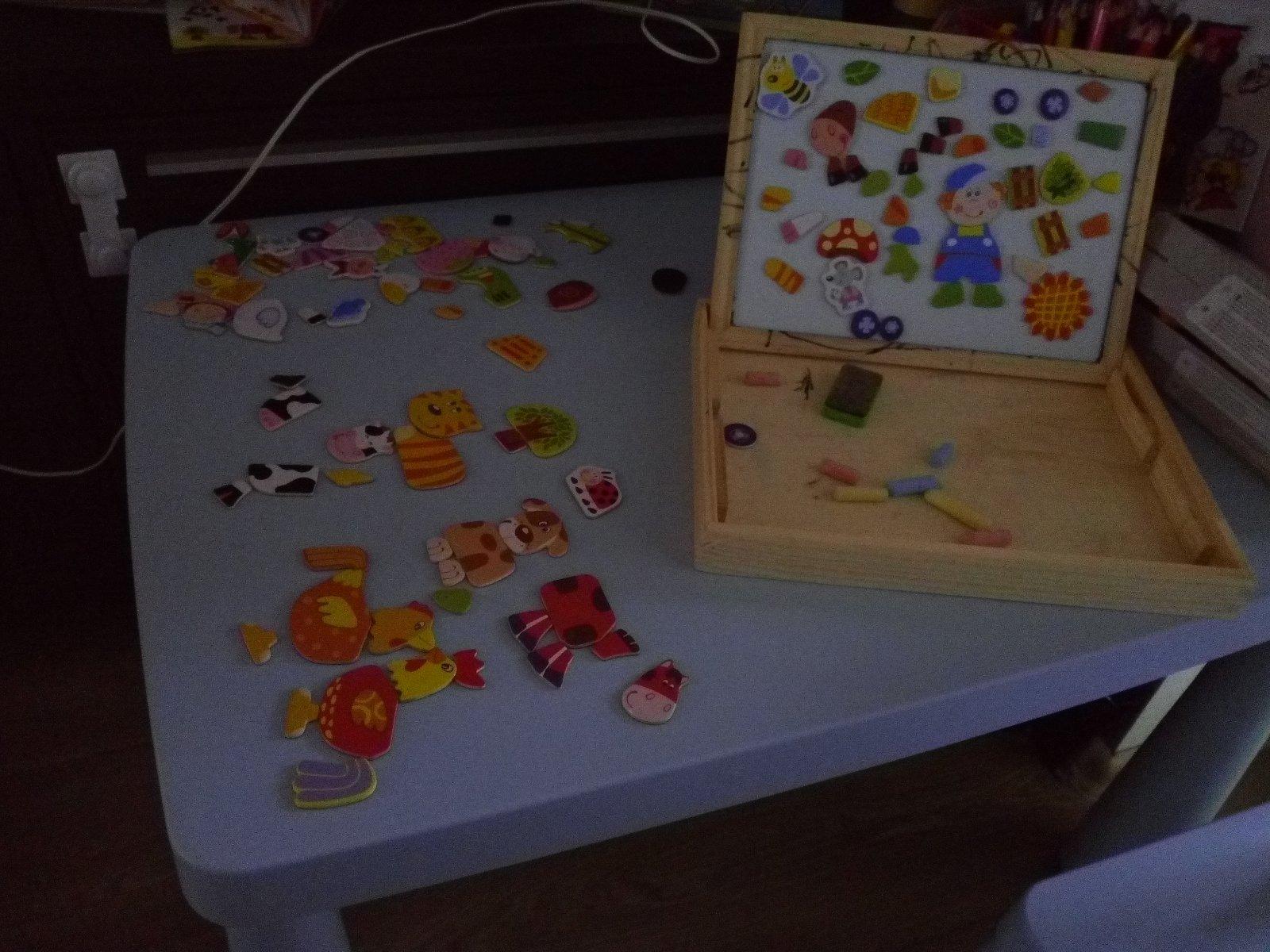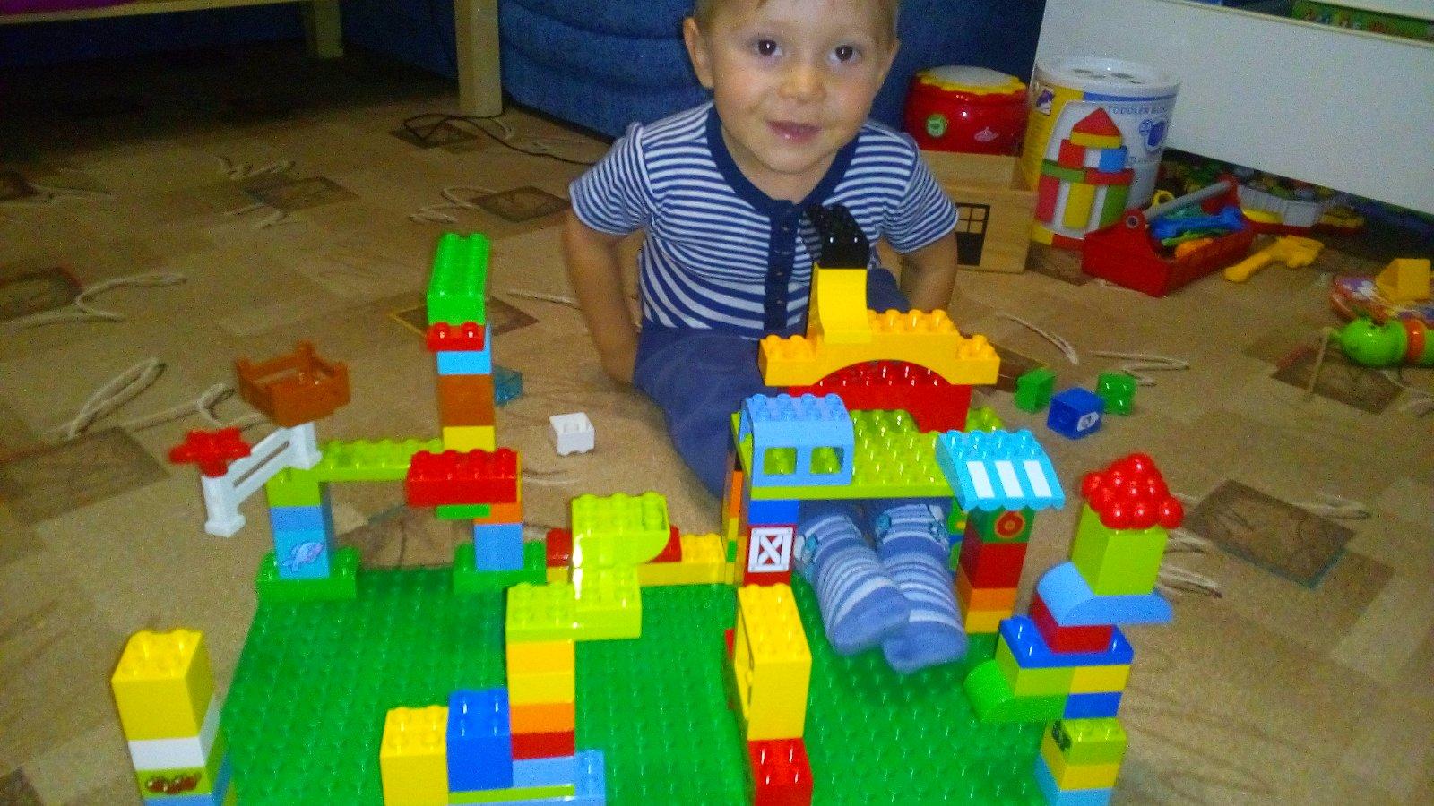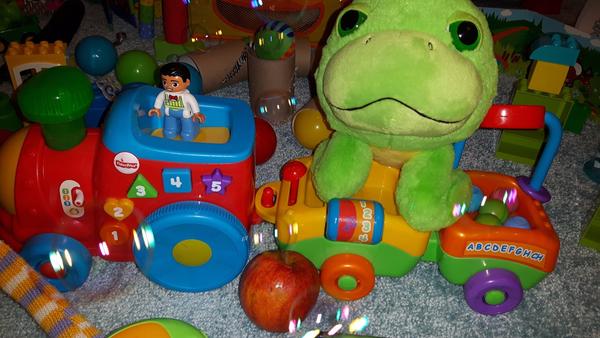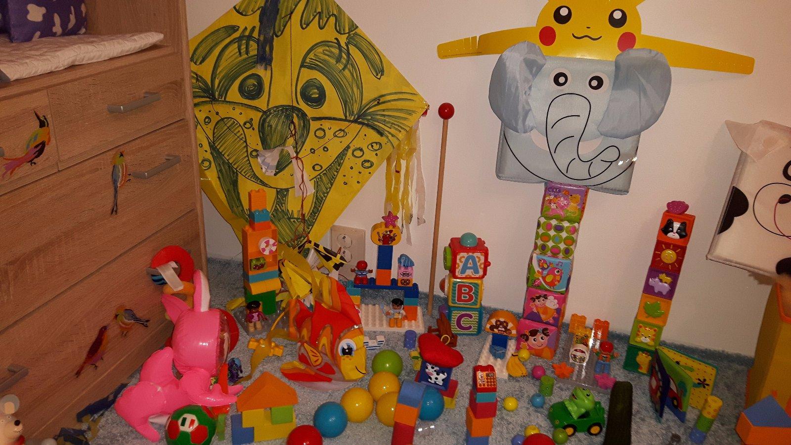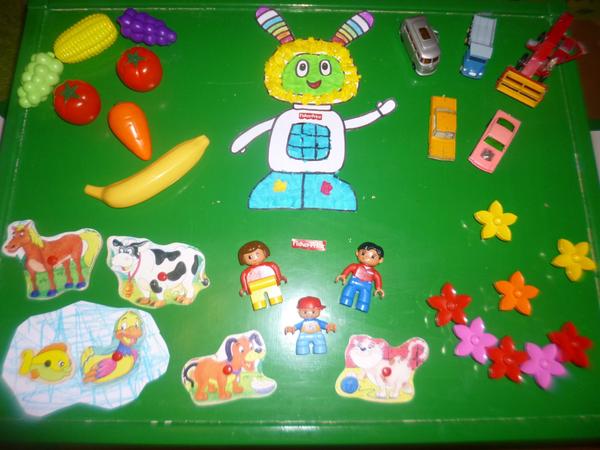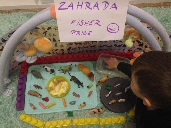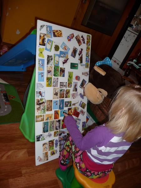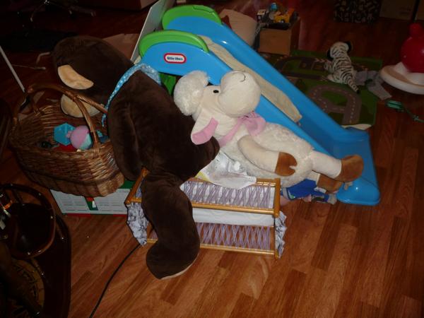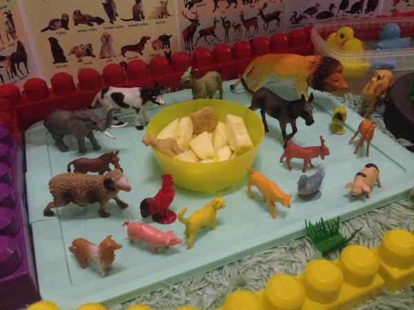 U nás už je tak trochu krizovka, obě děcka doma marod... takže jedeme různé filmy a pohádky a pro staršího doplňovací knížka... ale dnes se to zvrchlo ve velkovýstavbu zahrady smíchu a blbnutí, je to zcela multifunkční areál, kde lze poznávat zvířata a učit se poznávat nové, zároveň je tam ohniště, které zásobuje obývák teplem (rozuměj přímotop, který nemít, tak mrzneme, protože pan domácí nám netopí). Z druhé strany je kontejner z kamionu, ve kterém je dřvo (rozuměj par kostek) na zátop, pro odvod kouře máme i komín (=nočník). V zakoutí nesmí chybět klouzačka, která se rázem mění v horu, kousek dál je možno vidět kosatku Wiliho, jak skáče přes útes na svobodu za svou rodninou (rozuměj plyšová mega-opice a ovce = kosatky).