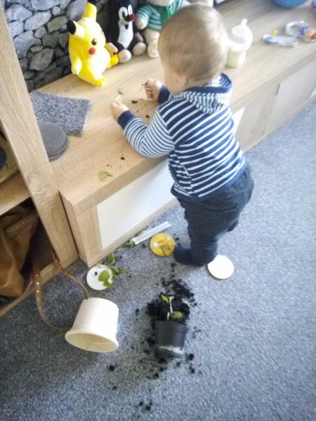 Tak já nevím.... Jonášovi se ty květiny a listy doslova líbí 😂 Ani nevíte jakou mi dalo práci zaprvé tu květinu uklidit a za druhé aby chvilku podržel ten list. Největší radost stejně pak měl z toho, že tu květinu může pošlapat a list sežrat 😂 nevím zda-li jsme dodrželi zadání ale oba jsme si užily plno legrace a mě chytaly infarktové stavy. Jinak Jonášek se na malého robota BeatBo strašně chlame když ho vidí v obchodě ,) Snad se na nás usměje štěstí 🙂