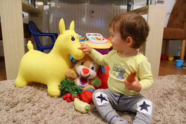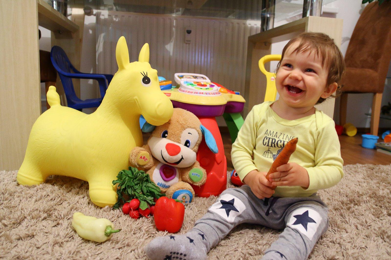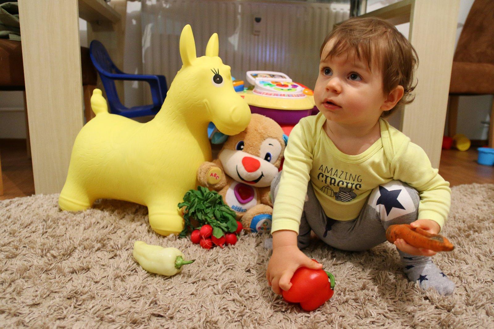 Jediné, co vzal na milost bylo "aranžmá" zeleniny. Ovšem jen do chvíle, než jí začal krmit svá zvířátka, případně ji okusovat sám 🙂 On sám je taková naše Zahrada smíchu 😉