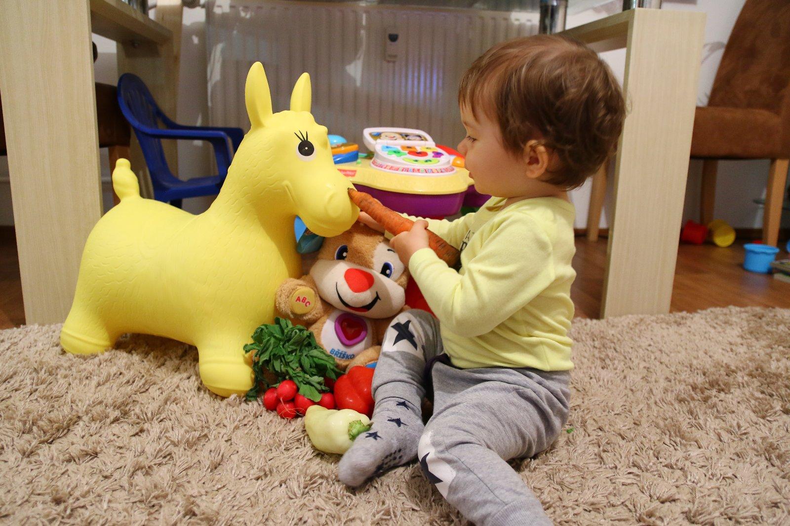 Protože byl před nedávnem Madlence teprve 1 rok, malování, modelování atp. by u nás nemělo moc smysl. Což se nakonec i hodí, ať je tu "Zahrada smíchu" i v jiném podání 🙂 Navíc Madlenka moc ráda zapíná různé přístroje, takže nám pečení přišlo vhod.